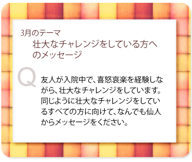 - >壮大なチャレンジをしている方へのメッセージ